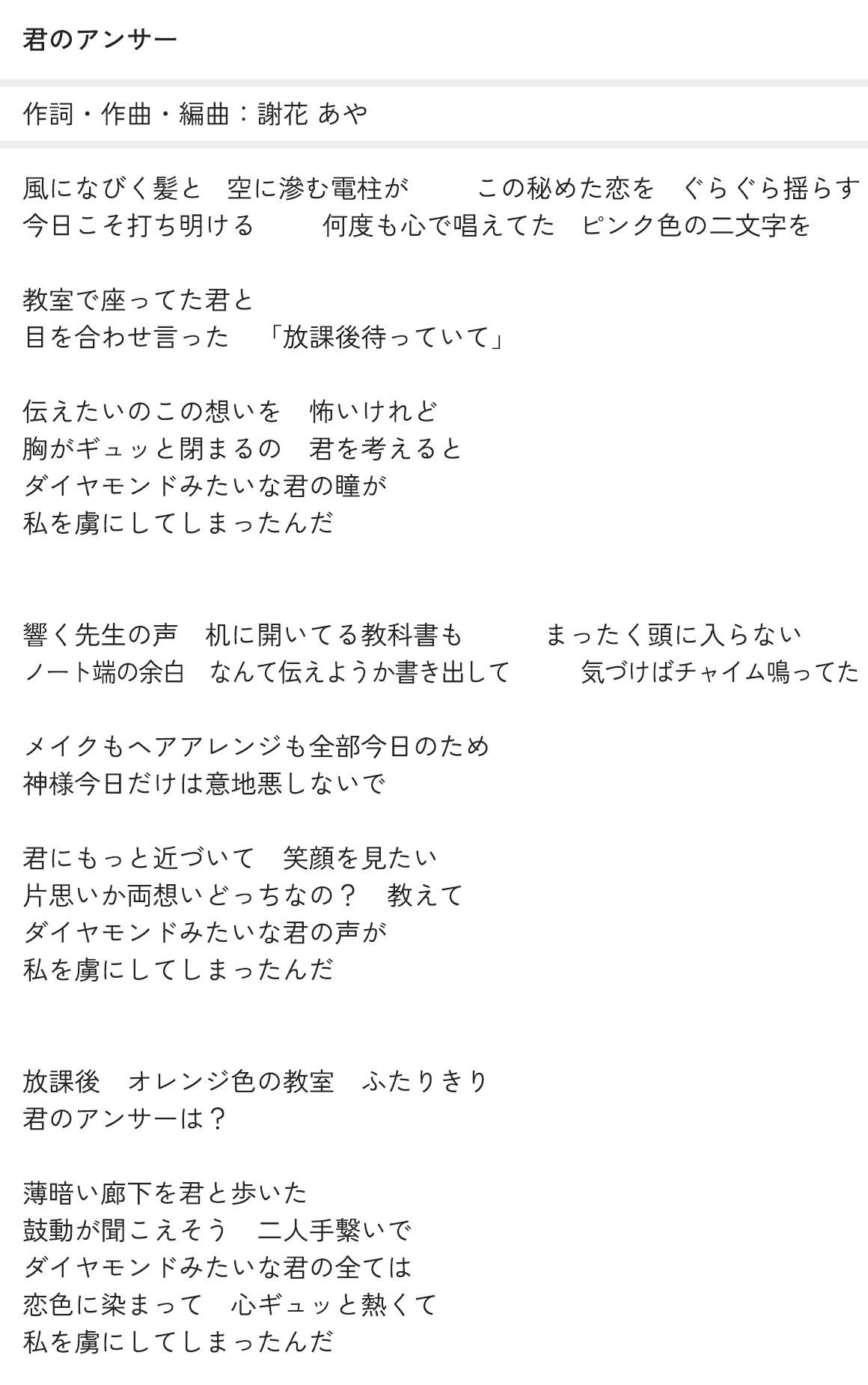 君のアンサー