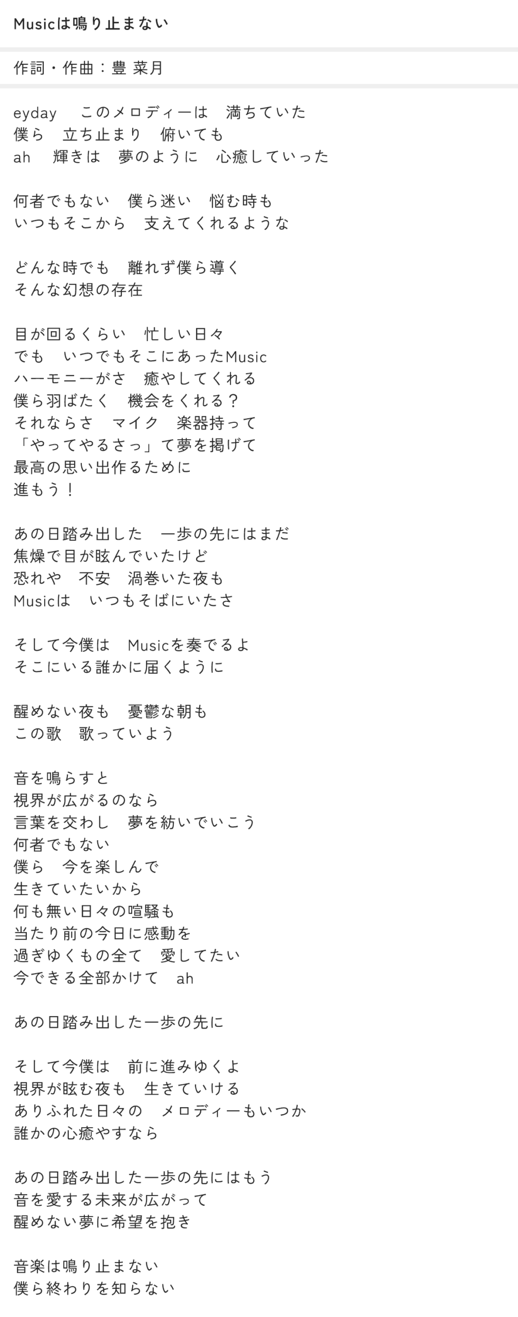Musicは鳴り止まない