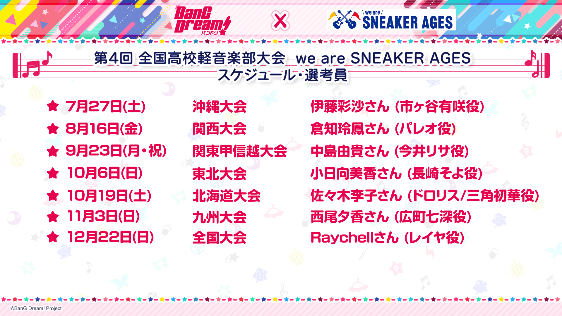 2024年度 スニーカーエイジ沖縄、関西、関東甲信越、東北、北海道、九州の各地区グランプリ大会、そして全国大会への、BanG Dream!キャストの選考員としての参加が決定!