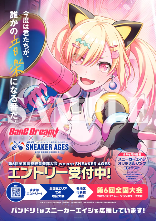 スニーカーエイジを通して全国の軽音楽部をともに応援してくださっているバンドリ!より、今年も日本全国の軽音楽系クラブのみなさんに向けて、バンドリ!×スニーカーエイジオリジナルポスターを制作いただきました!